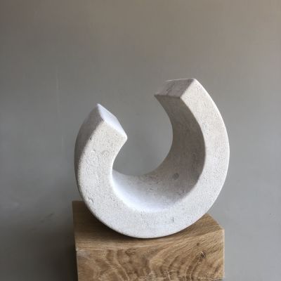 These sculptures think on the contemplative interest of minimal form, line and graduated shadow, they are balanced and will move. On a concave oak base they can be pushed to achieve a rocking motion.